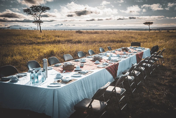 Meals are freshly prepared and served in carefully chosen locations, sometimes under the shade of an acacia tree during a midday break, or beside a campfire after a long game drive. It’s not about performance; it’s about the calm of the landscape, the distant call of wildlife, and a table set where you least expect it. What makes bush dining exceptional is the effort behind its simplicity — discreet service, real food, and the feeling that you’re exactly where you should be, with no walls between you and the world you came to see.